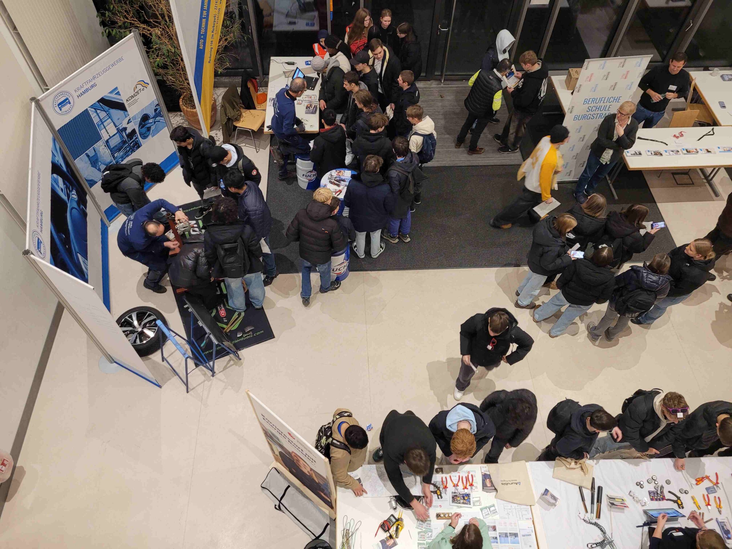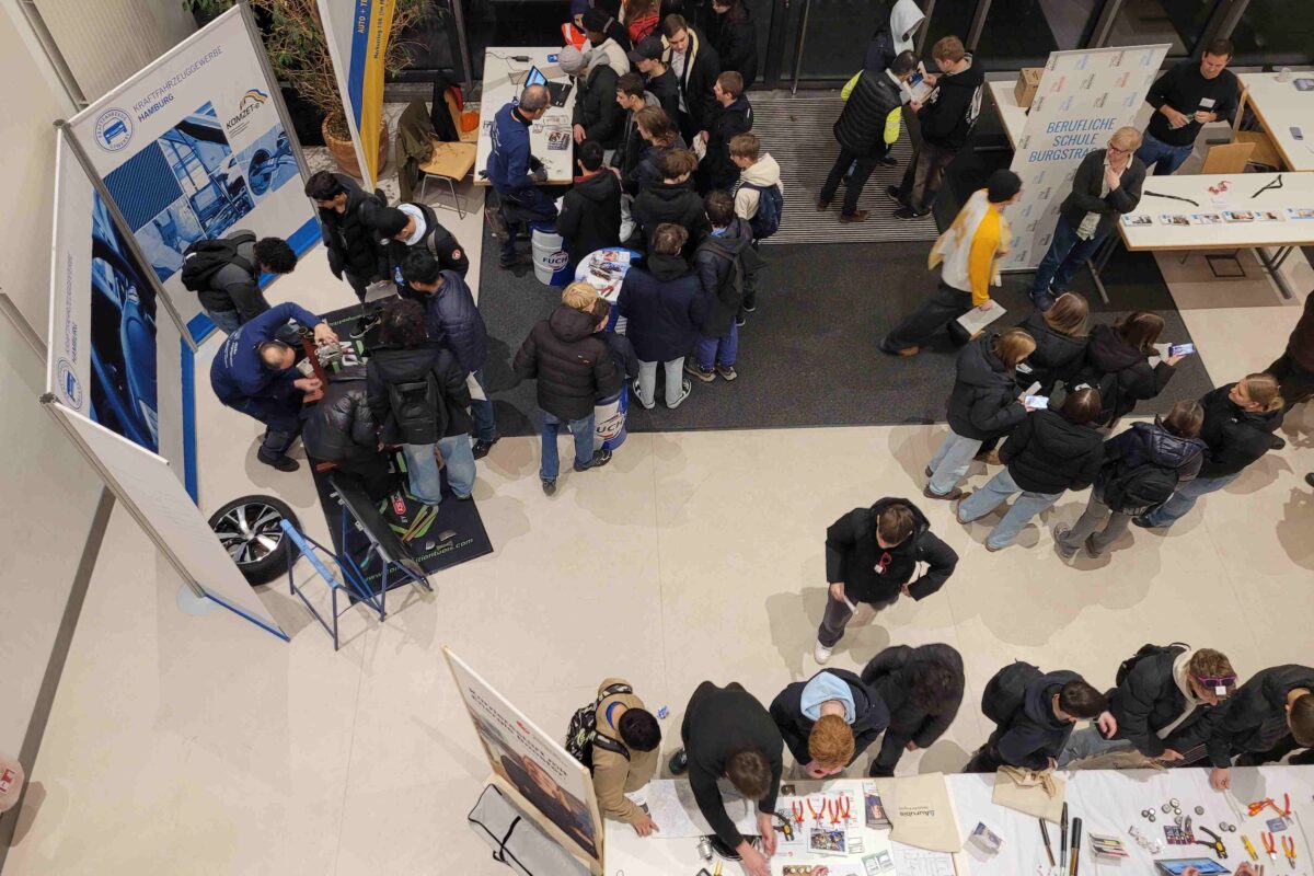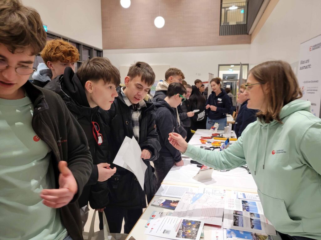 An einem Stand war zum Beispiel die Deutsche Bahn. Dort konnten wir erfahren, welche Berufe es bei der Bahn gibt und wie eine Ausbildung dort abläuft. Auch „Das Ausbildungszentrum Bau“ war vertreten. Sie erklärten, welche Arbeiten am Bau wichtig sind und wie eine Ausbildung in diesem Bereich aussieht. Ein weiterer Stand informierte über die Pflegeausbildung, also über den Beruf Pflegefachfrau oder Pflegefachmann. Sie erzählten, wie man Menschen im Krankenhaus oder im Pflegeheim hilft. Die Haspa (Hamburger Sparkasse) war auch dabei. Sie erklärten, wie eine Ausbildung in der Bank funktioniert und was man dort jeden Tag macht. Außerdem gab es Informationen von der Beruflichen Schule, die zeigte, welche Schulwege man nach der 10. Klasse oder später wählen kann. Ein sehr beliebter Stand war auch das Block House, das etwas über Gastfreundschaft und Arbeiten in einem Restaurant erzählte. Von DESY gab es Infos über Ausbildungen und duale Studiengänge in Technik und Wissenschaft, also perfekt für alle, die sich für Forschung interessieren. Dazu kam noch Asklepios, eine medizinische Akademie. Dort konnte man etwas über medizinische Berufe lernen und wie man dort eine Ausbildung beginnt.