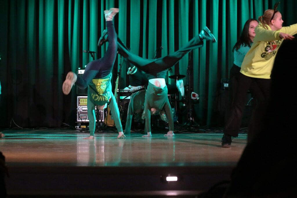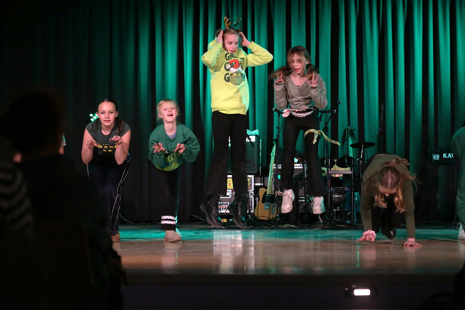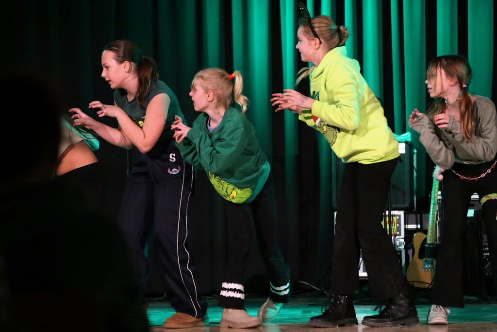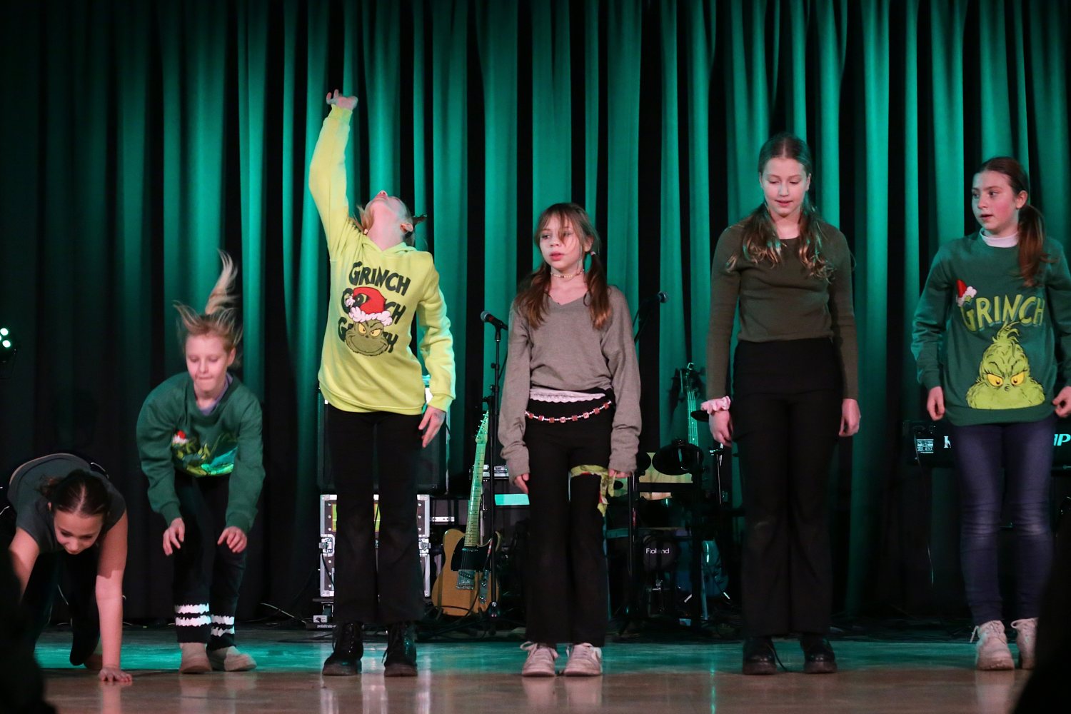 Danach gab die Klasse 5b unter der Leitung von Frau Sommer eine Tanzaufführung, wobei alle einen grünen Pullover trugen und selbst das Scheinwerferlicht war grün. Hätte nur noch ein Grinch gefehlt, der mitgetanzt hätte! Es war sehr kreativ gestaltet, der Tanz.