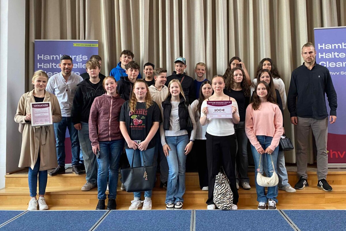 Die 7c – heutige 8c – hat im letzten Schuljahr am Haltestellen Clean Up teilgenommen und gewonnen. Zur Preisverleihung trafen wir uns um 9.00 Uhr an der U-Bahn Christuskirche. Da wir beide – Alissa und Mariella – leider zu spät kamen, weil zwei Bahnen ausgefallen sind, musste die Klasse ohne uns losgehen.