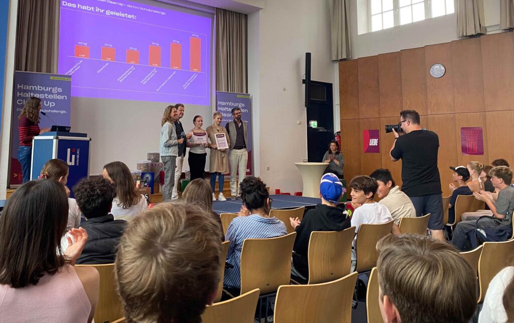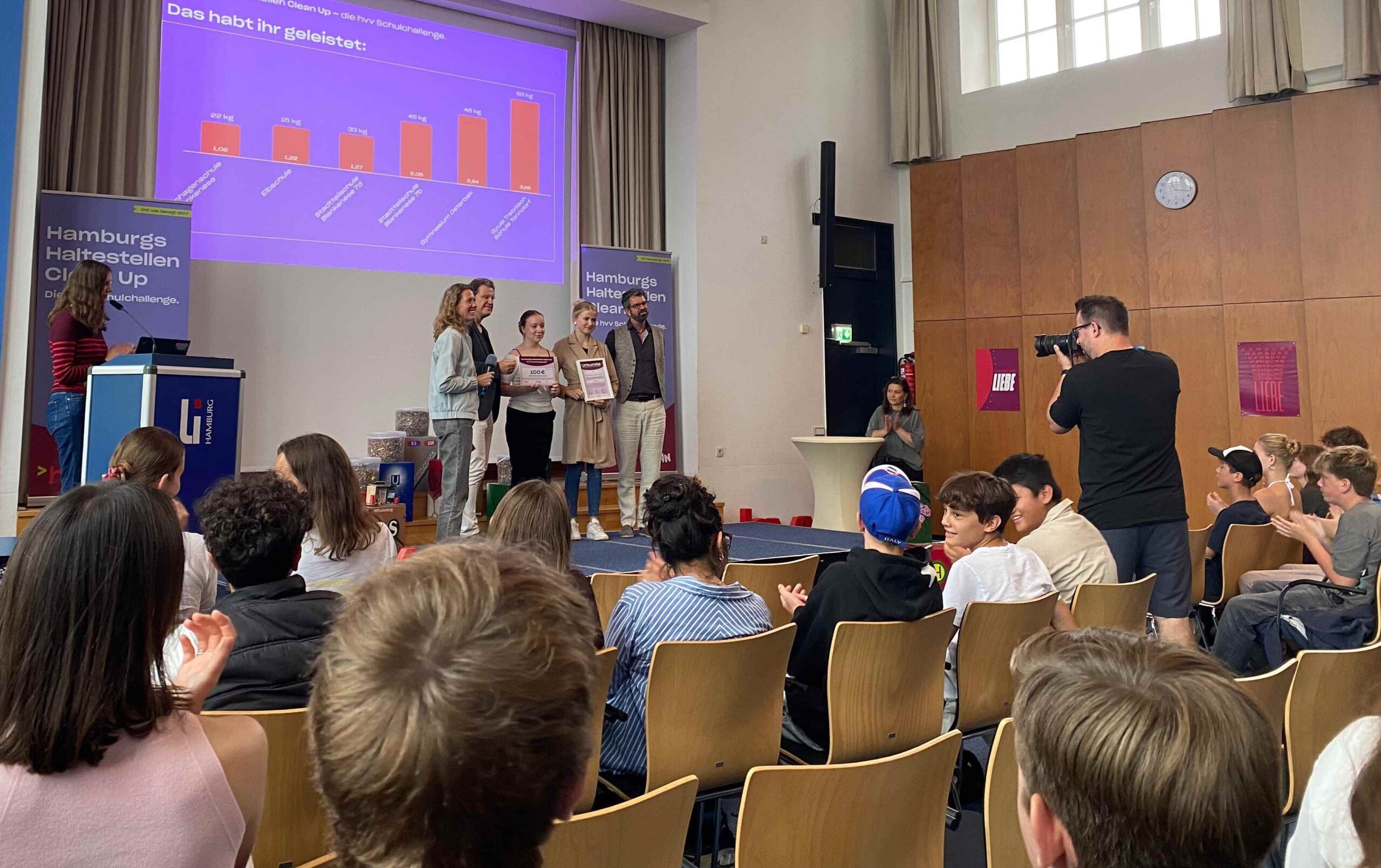 Die 7c – heutige 8c – hat im letzten Schuljahr am Haltestellen Clean Up teilgenommen und gewonnen. Zur Preisverleihung trafen wir uns um 9.00 Uhr an der U-Bahn Christuskirche. Da wir beide – Alissa und Mariella – leider zu spät kamen, weil zwei Bahnen ausgefallen sind, musste die Klasse ohne uns losgehen.